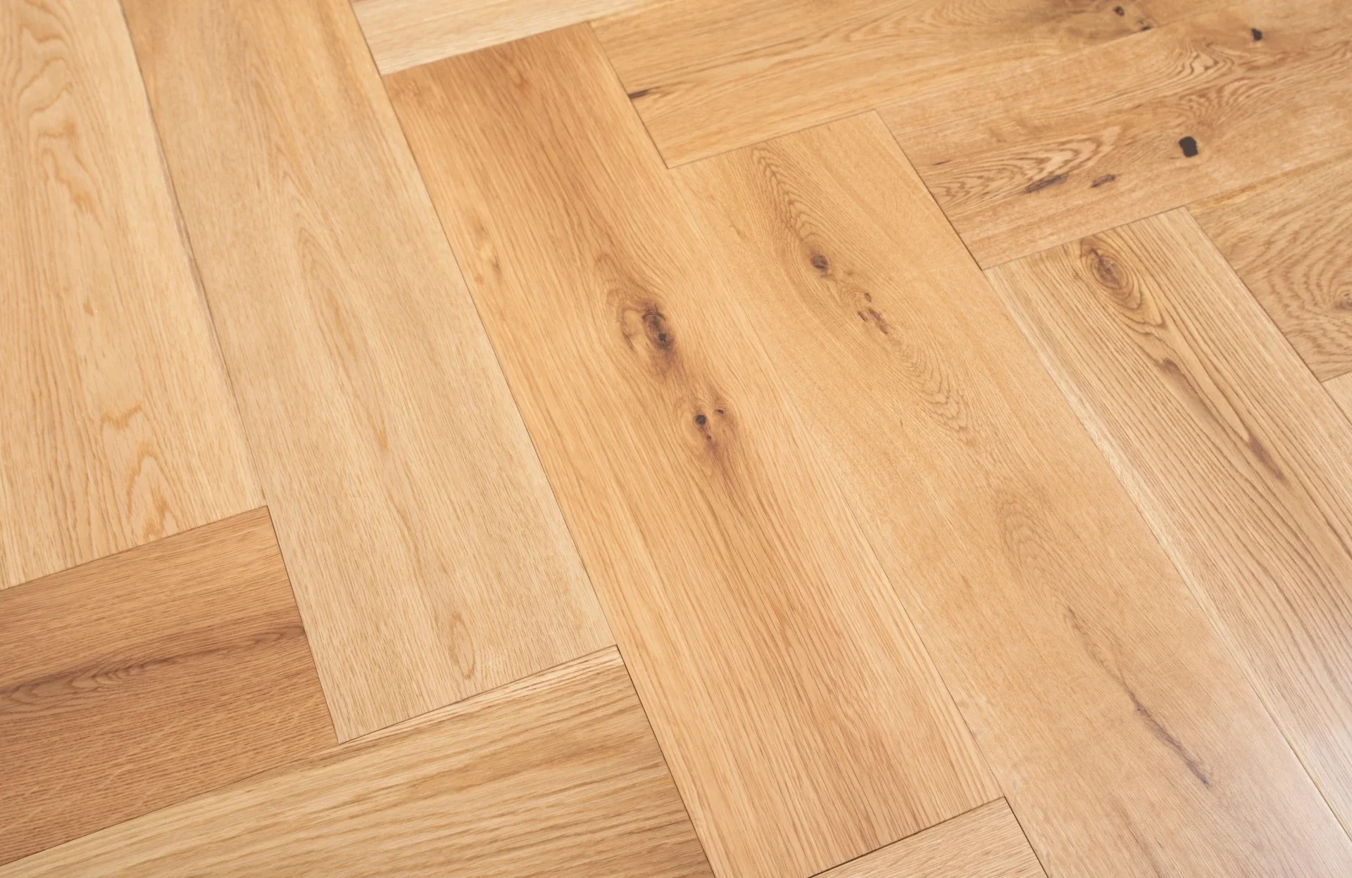 Each plank has a 4V Groove, bevelled edge giving each plank more definition individually. This floor can be sanded down up to 4 times however it shouldn't be necessary to do so for the first 15-20 years. The grade of this product is rustic meaning the planks have more knots and imperfections giving the product much more character and warmth. Additionally, the herringbone floor is on trend this year and will help to immediately modernise your home and keep it in style.